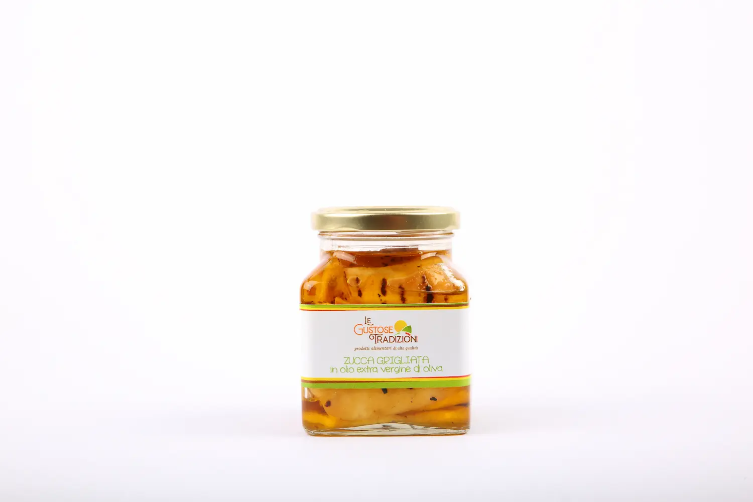 Dopo essere state accuratamente lavate e tagliate a fette, le zucche vengono grigliate a fuoco vivo per esaltarne il sapore e la consistenza. Una volta grigliate, le fette di zucca vengono immerse in olio extravergine di oliva, rigorosamente di provenienza italiana, per garantirne un alto valore nutrizionale e un sapore autentico e genuino.